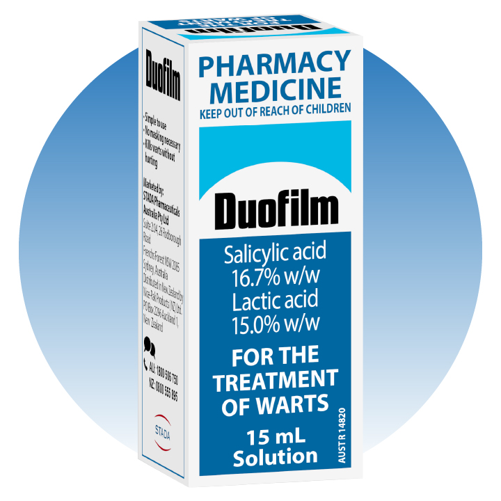Duofilm is a medicine containing salicylic acid and lactic acid. Do not use Duofilm on the face or anogenital regions. Do not use in children under two years of age. Talk to your doctor before using this medicine in children aged 2 to 12 years. Consult your pharmacist. Read the instructions carefully. If symptoms persist, see your doctor.